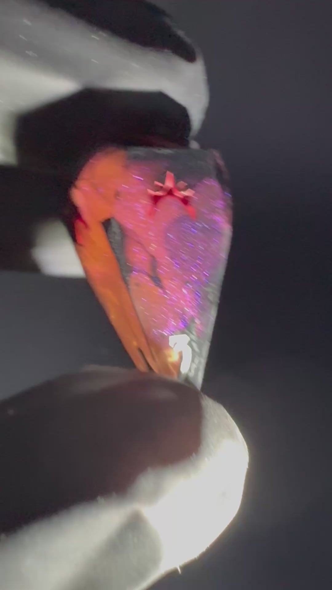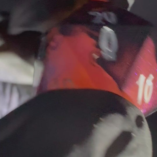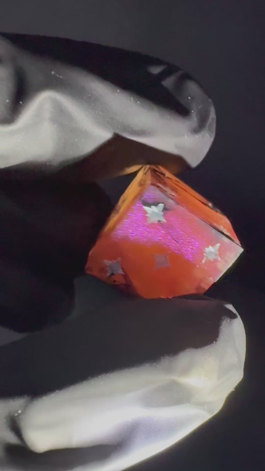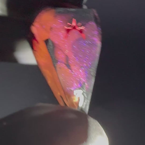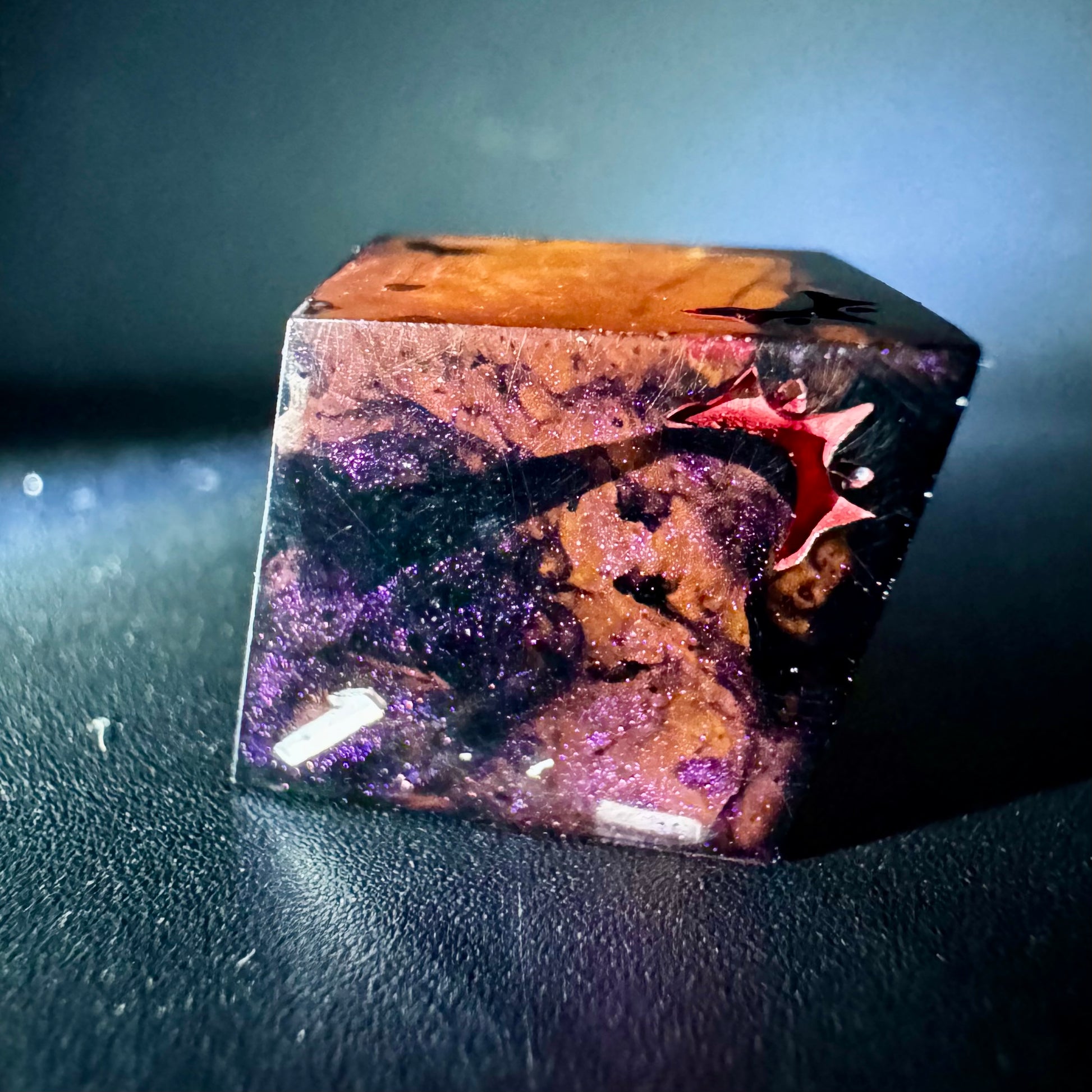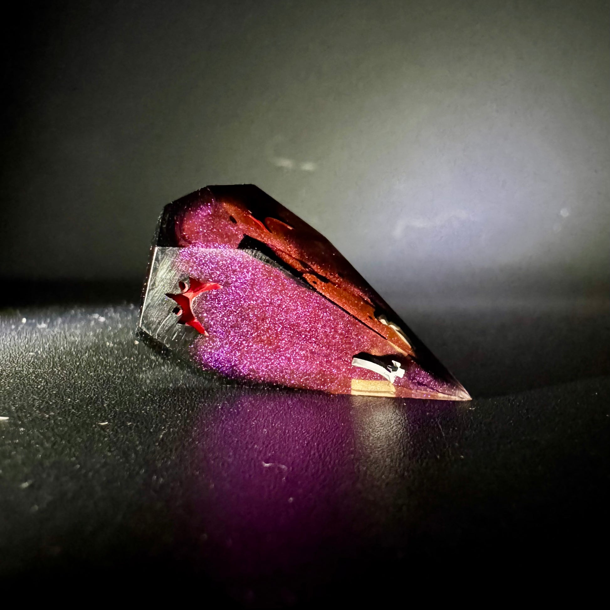Intricate eight piece set in colour shifting magenta-purple-red with creeping black tendrils. Numbers inked in bright matte white with crown detailing in blood red.