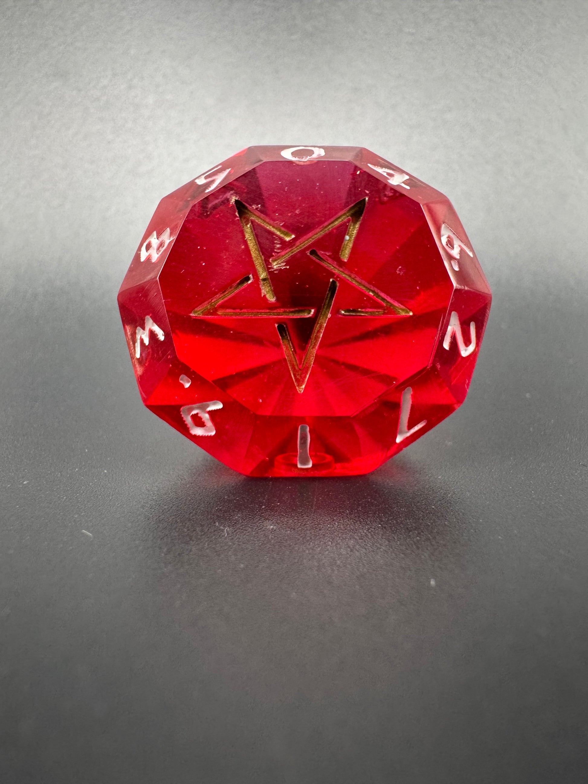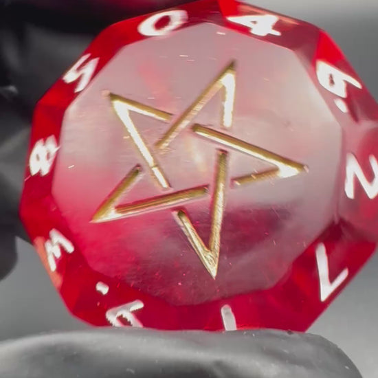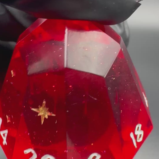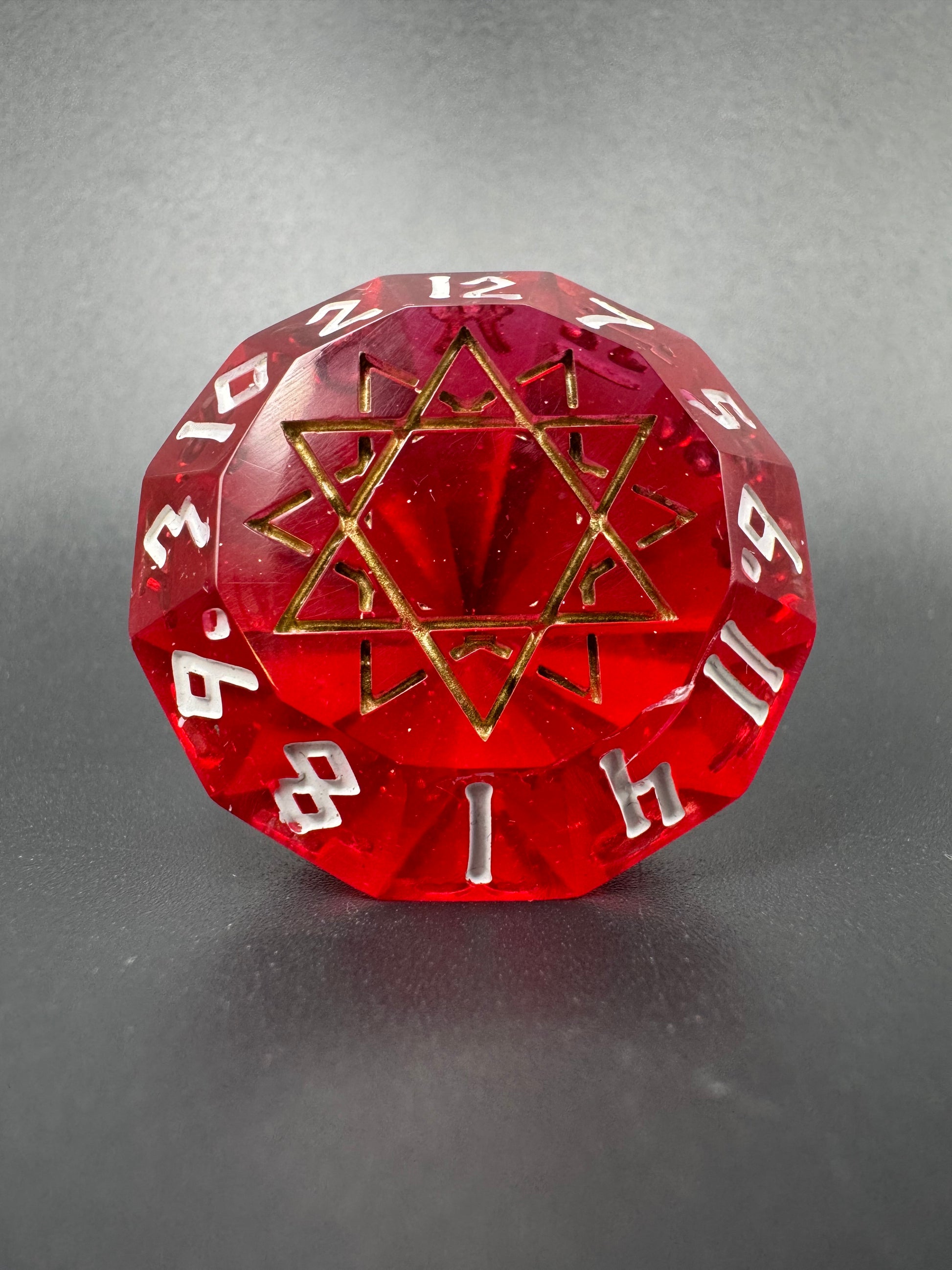 6 piece crystal set in bright translucent ruby red. Detailing inked in metallic gold with numbers in white.